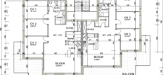 La vente se fait sous forme de 4 appartements, 2 au rez, 2 à l'étage, et la disposition est la suivante: