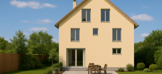 - Architecture : maison traditionnelle avec toiture à deux pans et crépi.